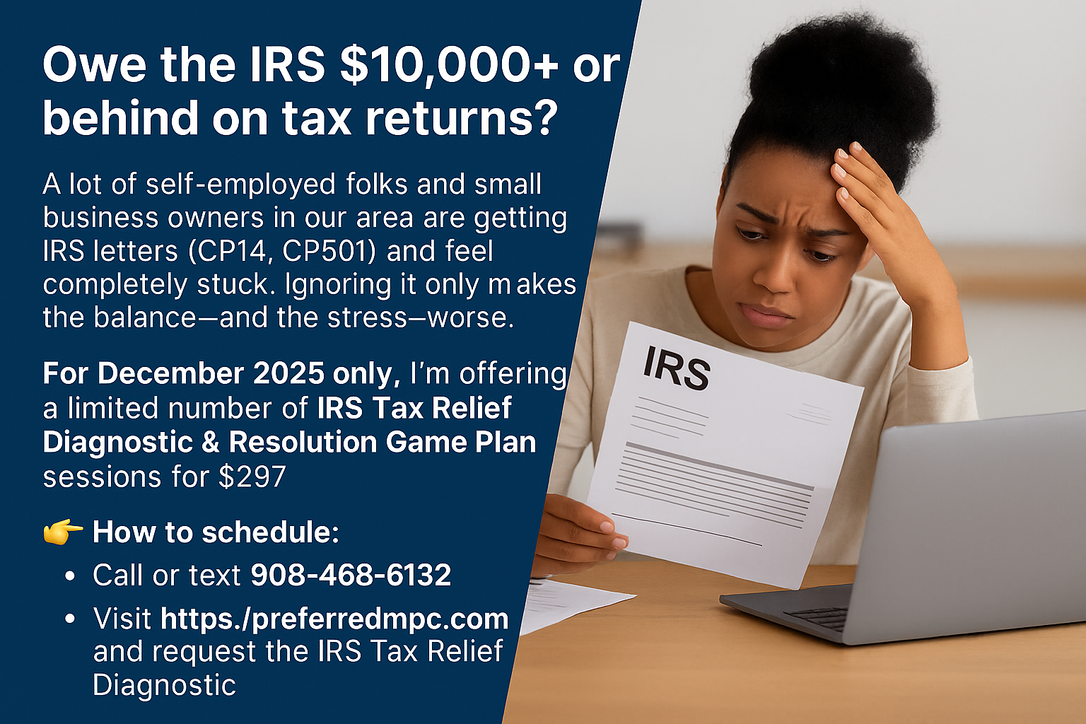 Trusted CPA specializing in IRS Tax Resolution, Tax Planning, and Fractional CFO services for small businesses and individuals. Serving New Jersey, Maryland, and beyond with professionalism and results.